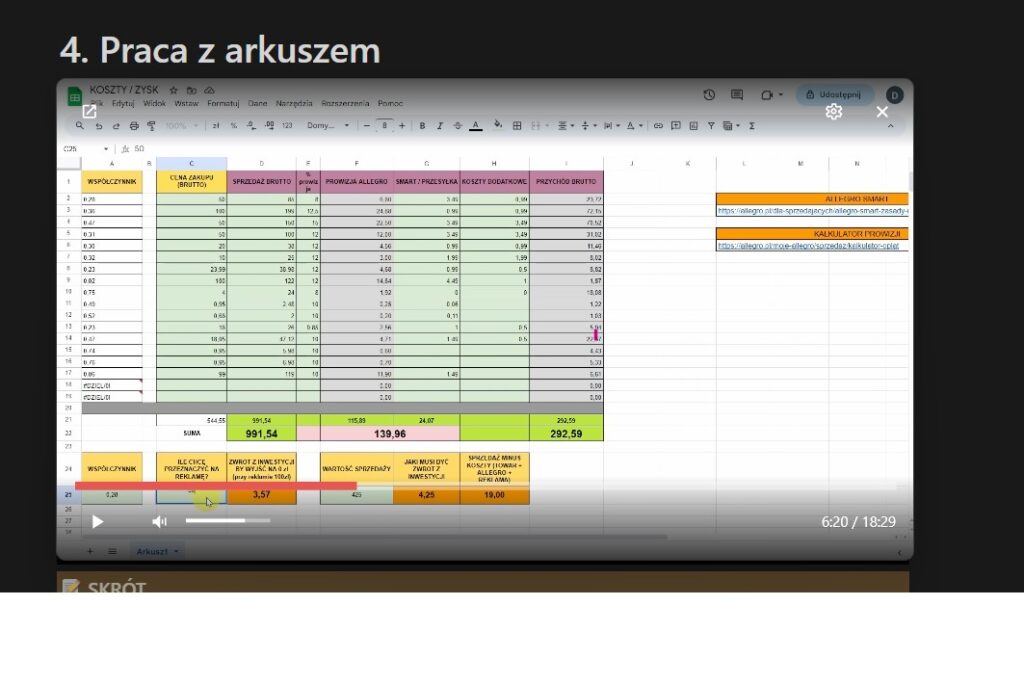 W kursie ten temat poruszam ogólnikowo (jakich rzeczy unikać podczas tworzenia oferty, na co zwrócić uwagę, co uzupełnić, jakie oferty nie nadają się pod kampanię), ponieważ bardziej skupiam się na pracy z arkuszem i pracy w panelu Allegro Ads. Tworzenie oferty od podstaw to temat na oddzielny kurs